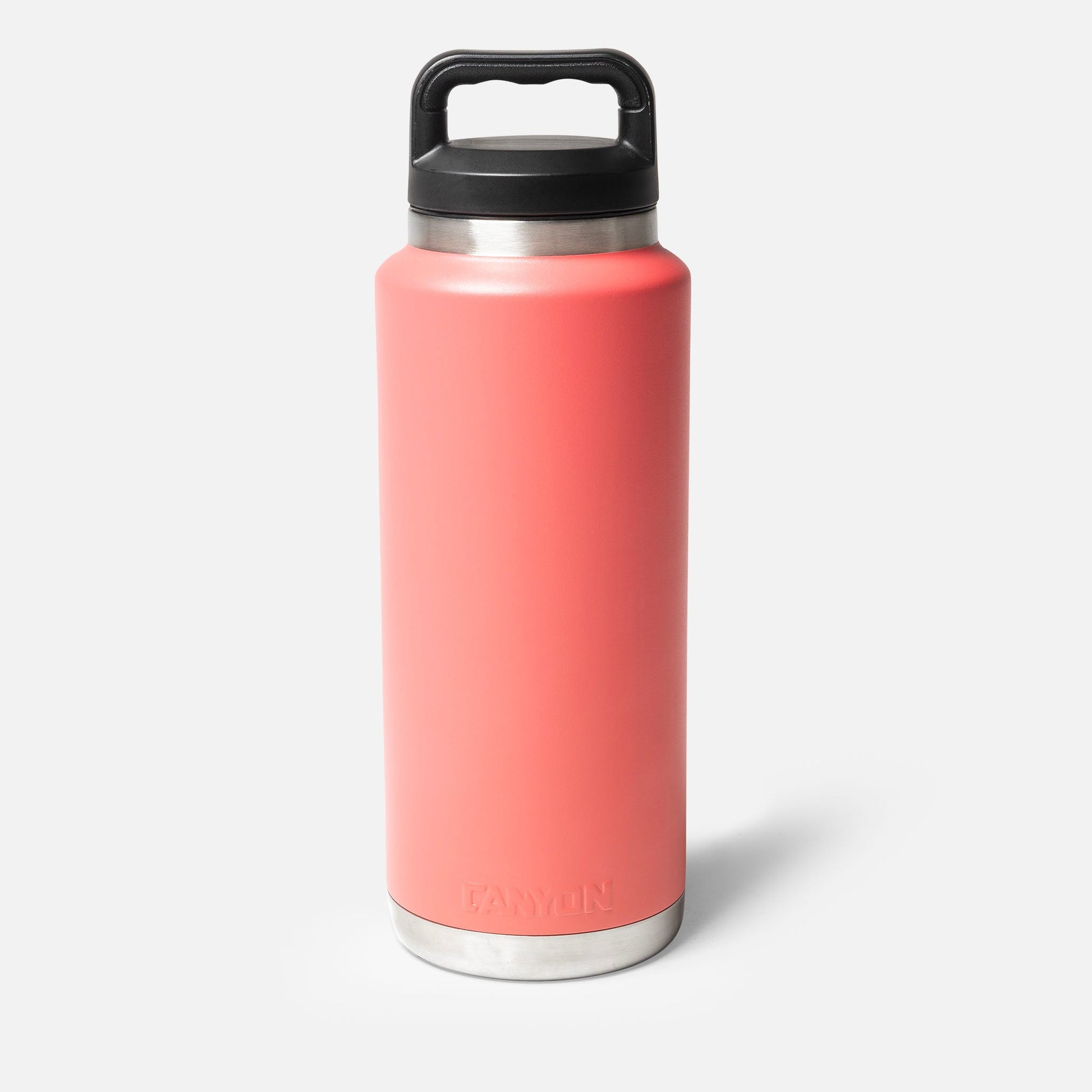 The ALL NEW double walled, vacuum sealed 36 ounce bottle will keep your coffee piping hot, or your water ice cold.